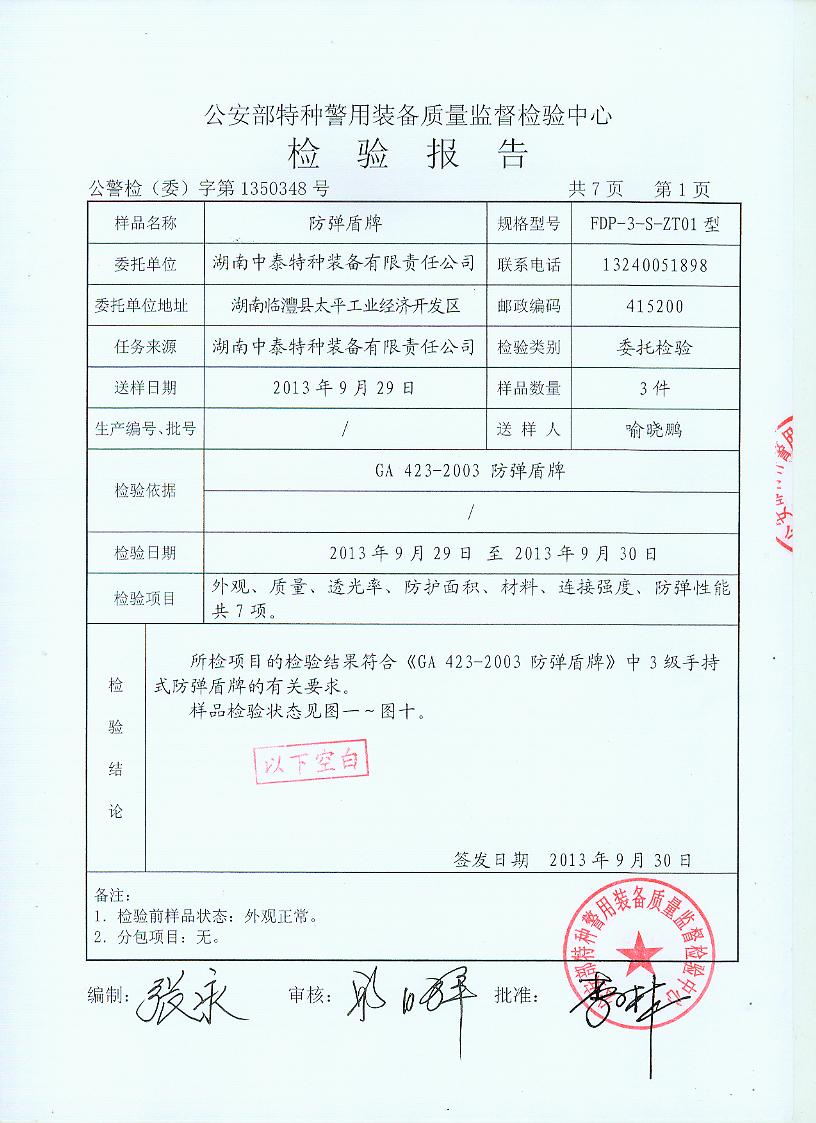 防彈盾牌采用輕型超強防彈纖維材料壓制而成,配合防彈視窗和獨有的多孔式手 柄,綜合防彈性能好、防彈級別高,提供了最大范圍的有效防護區域,舒適的手持也使得 其應用更輕便靈活。